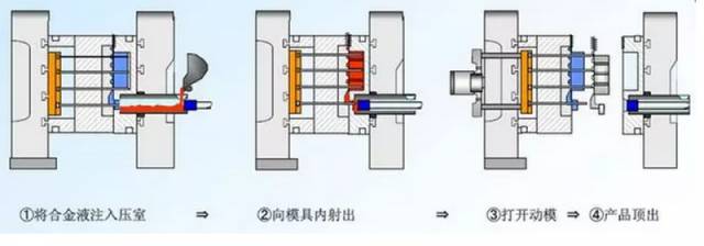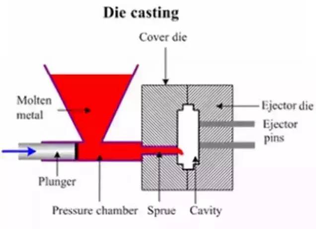 在高压作用下,使液态或半液态金属以较高的速度充填压铸型(压铸模具)型腔,并在压力下成型和凝固而获得铸件的方法。