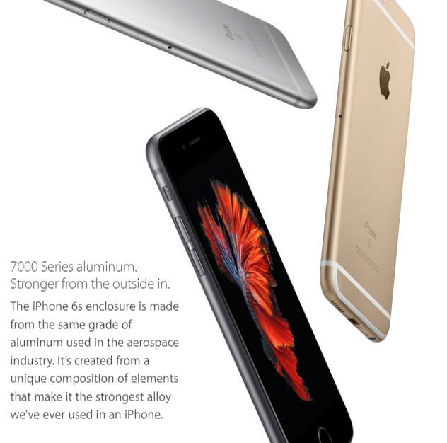 iPhone 5、6采用铝合金一体成型,即机身和边框都是由一整块铝合金CNC加工而成,但考虑到手机的射频信号问题,机身会被分割成几段,一般在上下两端选择注塑等隔断。