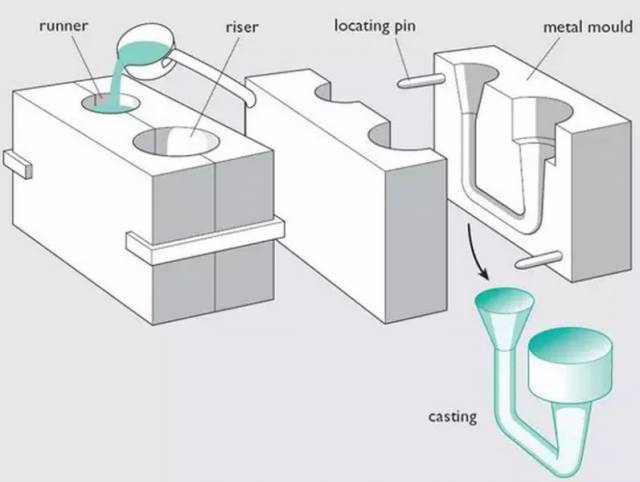 是指金属液在地球重力作用下注入铸型的工艺,也称浇铸。其金属液一般采用手工倒入浇口,依靠金属液自重充满型腔、排气、 冷却、开模得到产品。